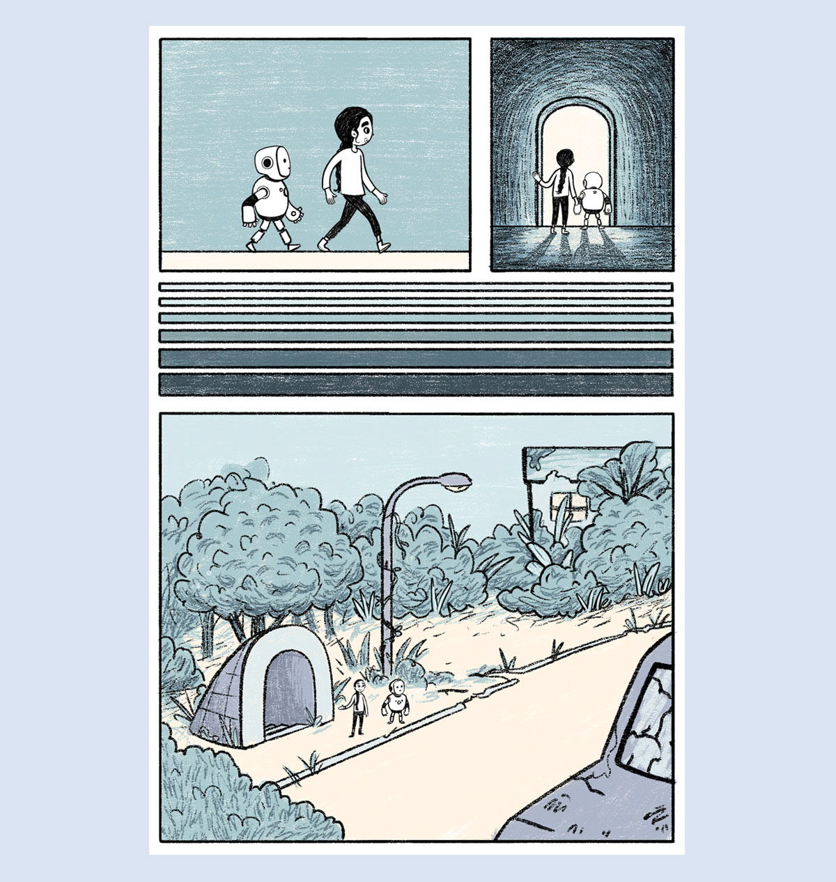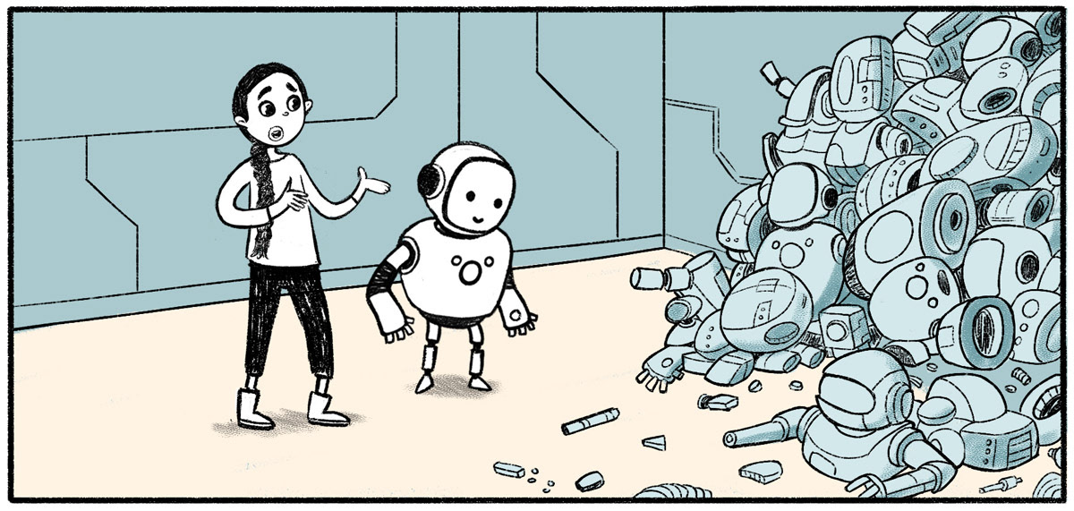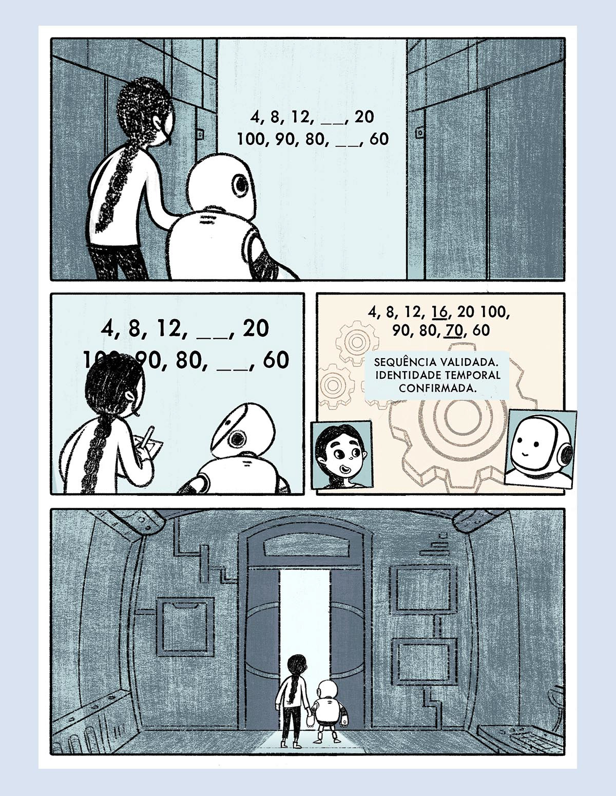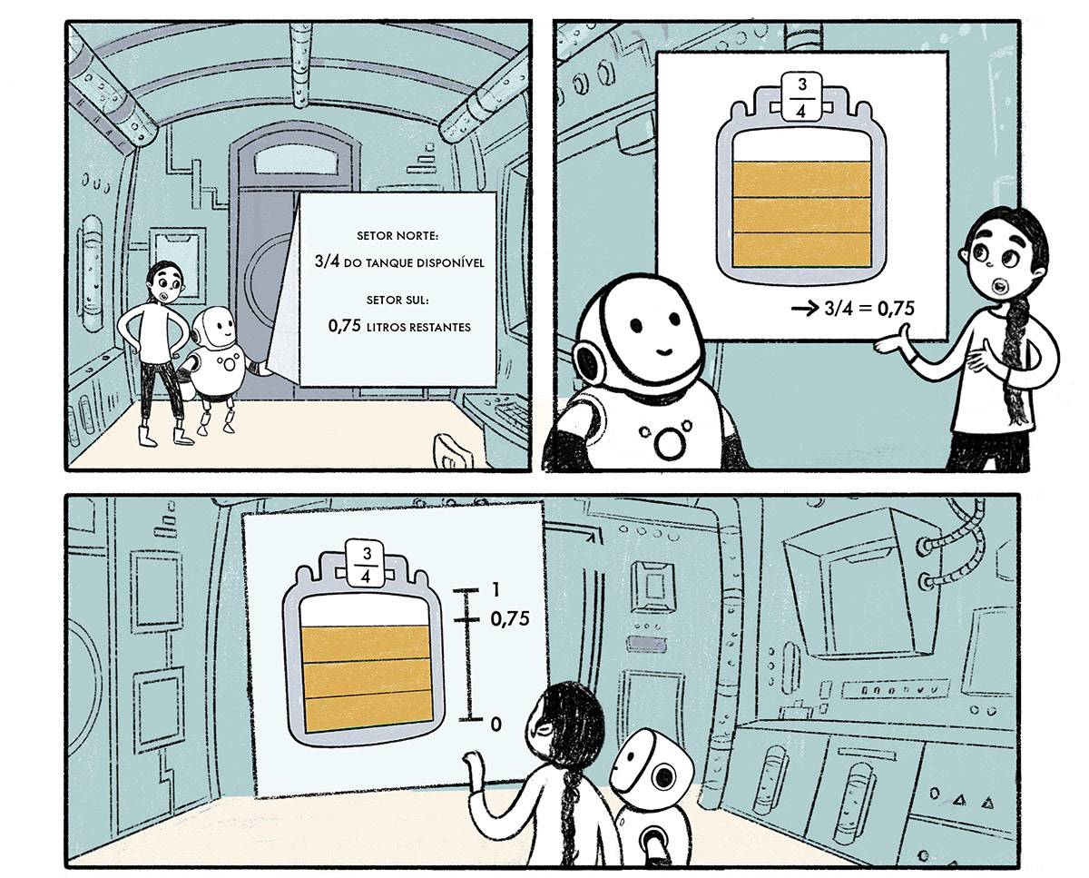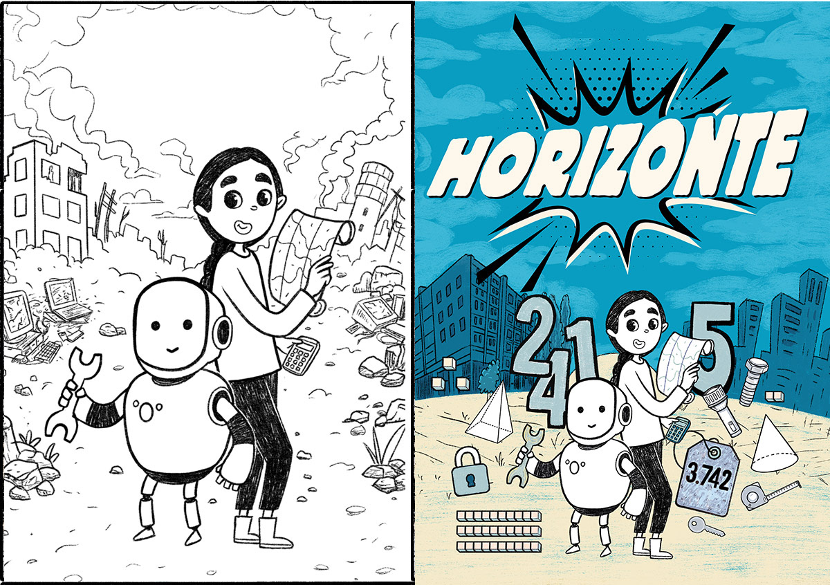 EN| Horizonte is a teaching material project designed to assist in the late literacy of young people aged 15 to 18. Mathematics and Portuguese content is taught to them through a narrative constructed in the form of a comic book. Aurora Ron, the protagonists of this story, find themselves in an apocalyptic, devastated setting. Together, they begin to investigate what may have happened there and initiate a reconstruction plan. The reconstruction of this devastated community is a metaphor for the internal reconstruction of each student who comes into contact with this material :)
